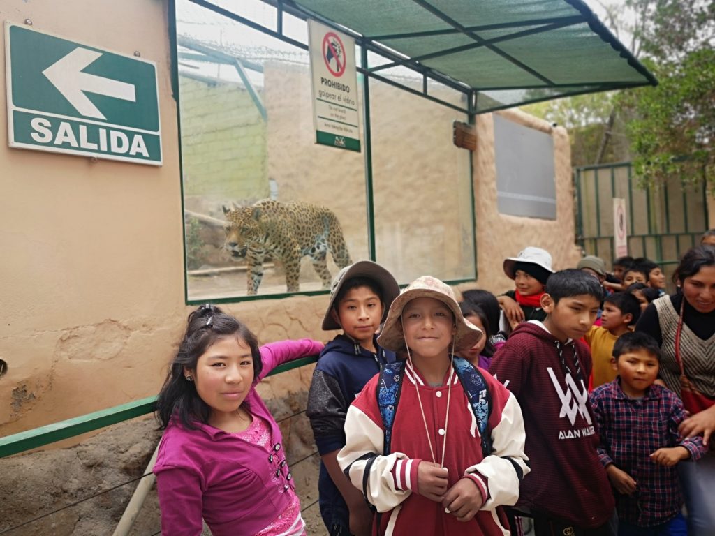 Casa Chapi students who achieved the world standard of reading earned a day at the zoo. They seem unaware that they’re being checked out by a jaguar behind them!